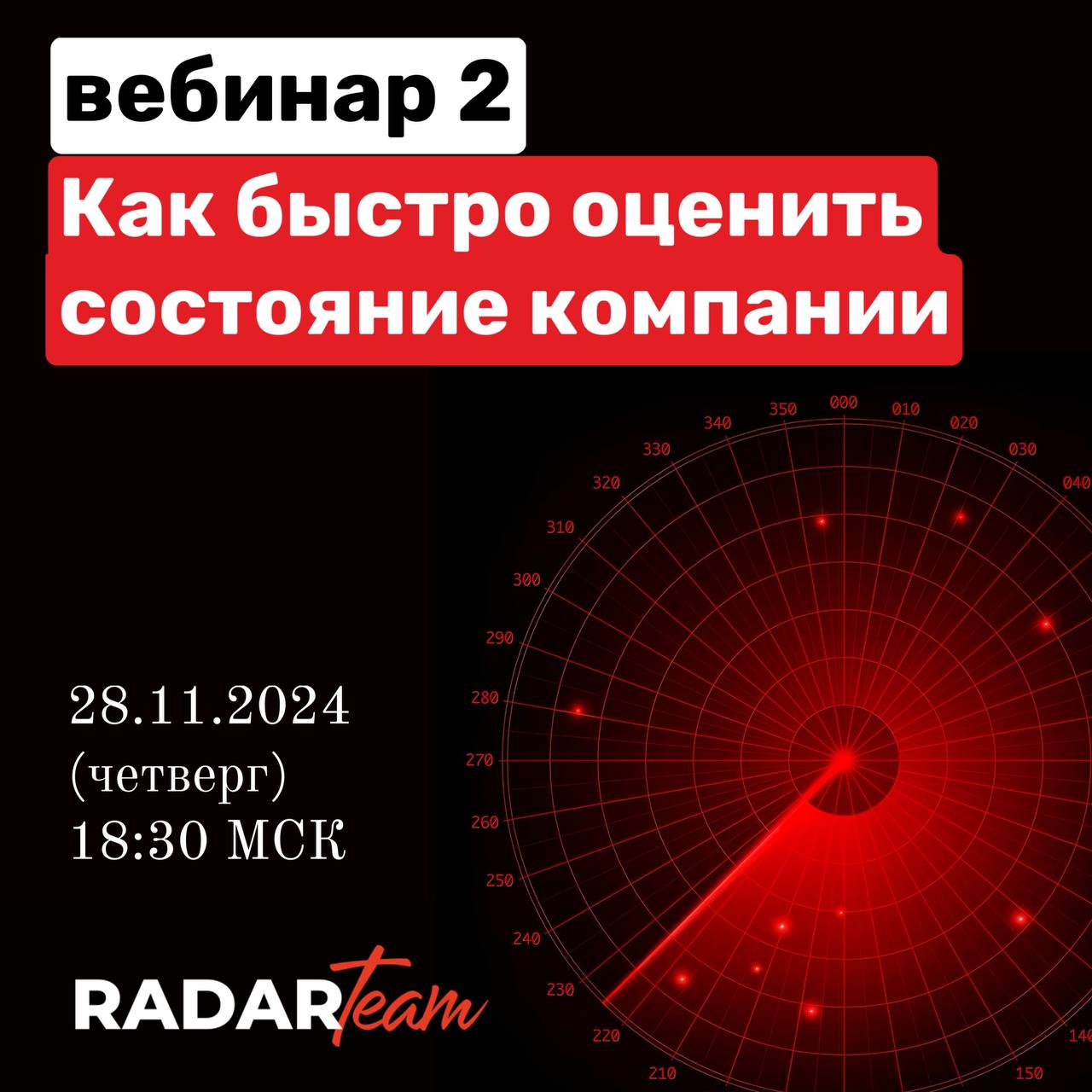 На втором вебинаре мы расскажем как вы сможете самостоятельно силами своей команды оценить свой бизнес по построенной ранее бизнес-модели РАДАР. Просто, быстро и наглядно.