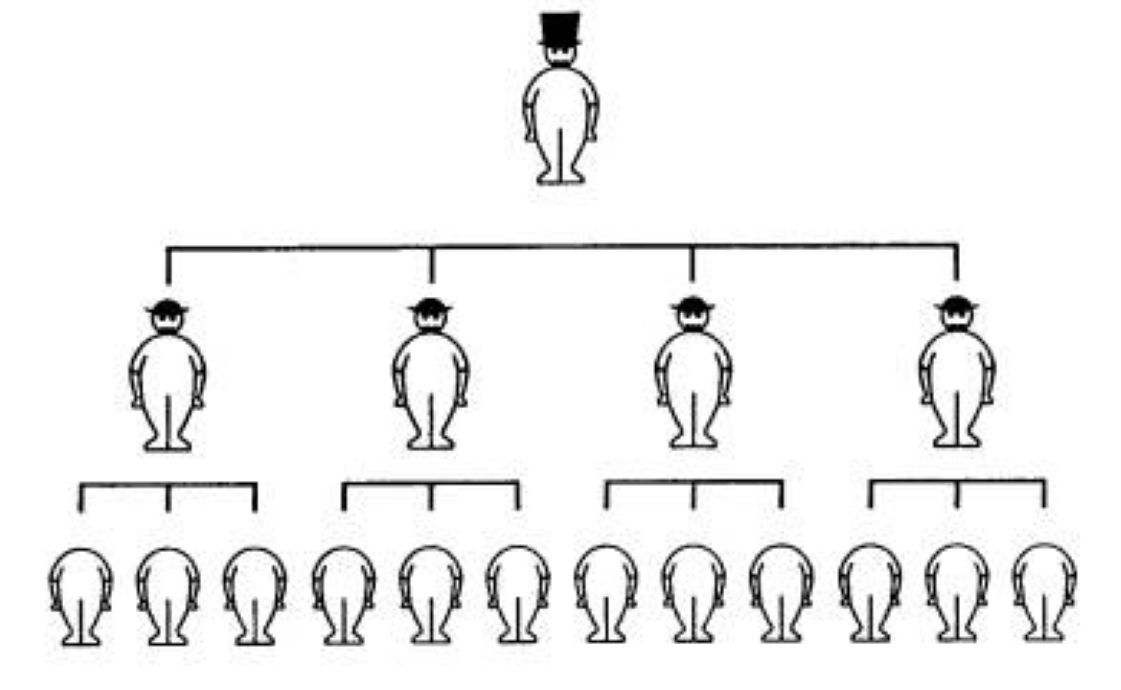 В своей книге "Менеджмент нового времени" Эдвард Деминг жестко критикует традиционную пирамидальную организационную структуру. Он указывает на ее главный недостаток: отсутствие связи с процессами и клиентом.